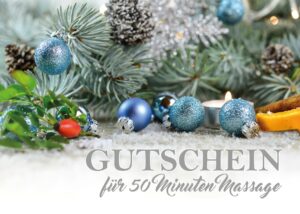 Ich biete Ihnen die Möglichkeit, Ihren Liebsten das Geschenk der Entspannung zu machen. Meine Massage-Gutscheine sind eine tolle Geschenkidee und können telefonisch oder online bestellt werden.